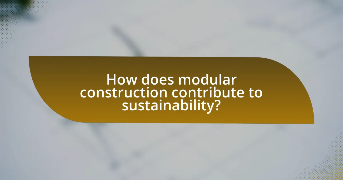 Modular construction contributes to sustainability by significantly reducing waste and energy consumption during the building process. This construction method utilizes prefabricated components manufactured in controlled environments, which minimizes material waste by up to 90% compared to traditional construction methods. Additionally, modular buildings can be assembled more quickly, leading to lower energy use on-site and reduced carbon emissions. Studies indicate that modular construction can decrease construction time by 30-50%, further enhancing its sustainability profile.